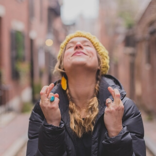 Begin by taking a breath in and let it go with a sigh and a drop of your shoulders.