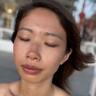 You feel in the warmth of the sun as you hug yourself,