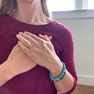 Watching closely as you inhale deep into the belly and allow the breath to gently move out.