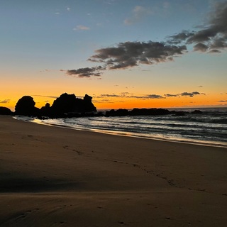 And you follow the stream until it opens out into a small clearing with soft grass and a view of the stars just beginning to appear.