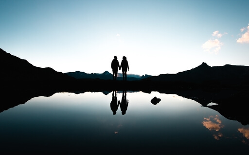 You both look each other in the eyes with a loving compassion.