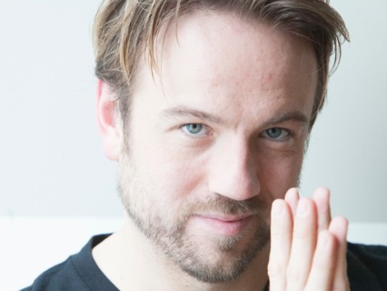 Cradling his head,