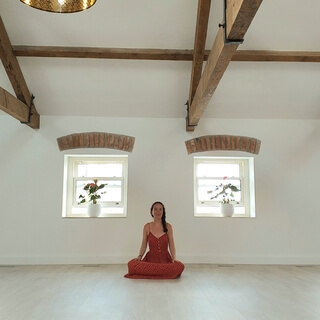 Letting your eyes softly close or just glancing towards the earth and slowly becoming aware of the cycle of breath flowing through you,