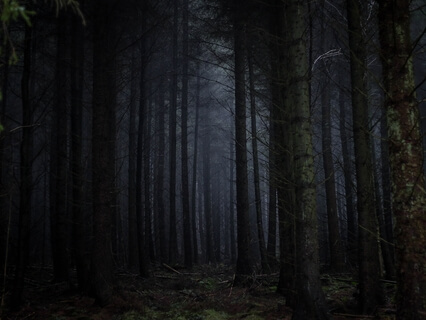 Moonbeams softly reach their fingers through the limbs of the forest,