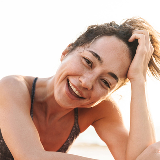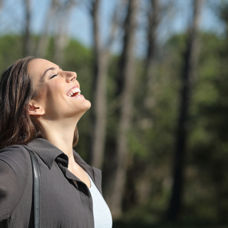 Lift the corners of your mouth into a little smile and slowly blink open your eyes.