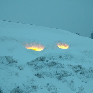 The snow catches the light,