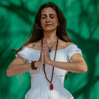 You can place your right hand over your heart and your left hand over your belly right below your navel.