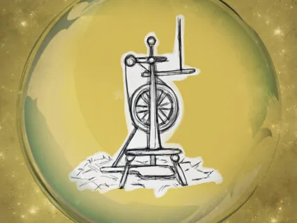Das Männchen nahm den Ring und fing wieder an zu schnurren mit dem Rad und hatte bis zum Morgen alles Stroh zu glänzendem Gold gesponnen.