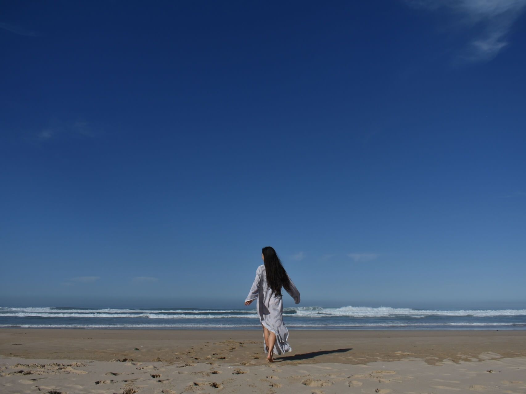 The deep calming waves of the ocean are crashing before you,