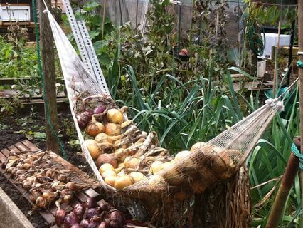 He has spotted a whole hammock full of onions on a neighbour's plot.