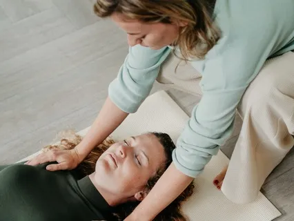 Ontspan je schouders en leg je handen ergens neer op je schoot,