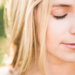 Mięśnie dookoła oczu i powieki lekko zamknięte.