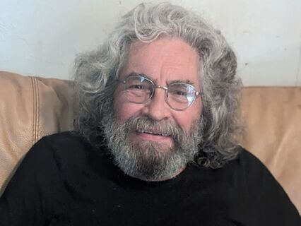 One of my grandchildren takes a picture of me sitting in a chair,