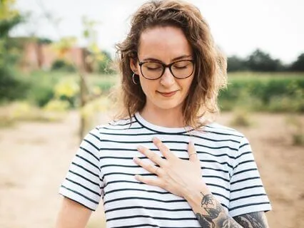 Lege dir beide Hände auf deinen Brustkorb.