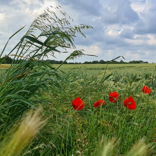 You can see long grasses around you moving gently in the breeze,