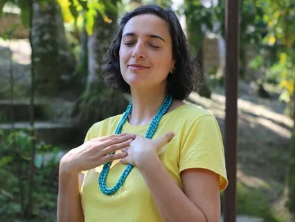 Inspirando e expirando e entrando em contato com o seu ser.
