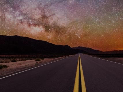 See yourself arriving on a desert road,