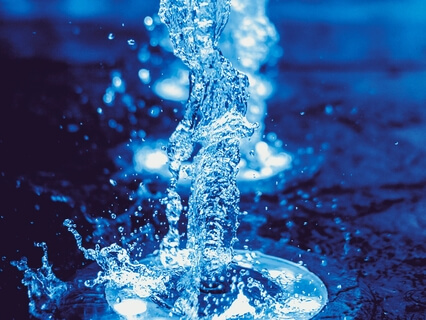 With a fragrance of eucalyptus that is hung around a marble fountain set within the wall and illuminated by an indigo light.