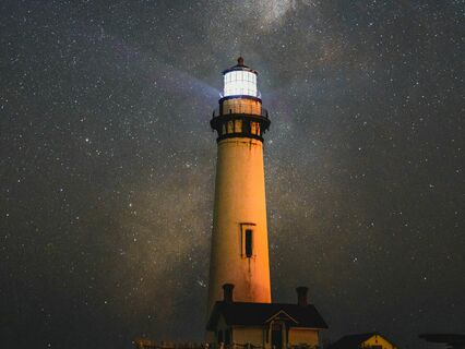 Shining along with the lighthouse beacon.