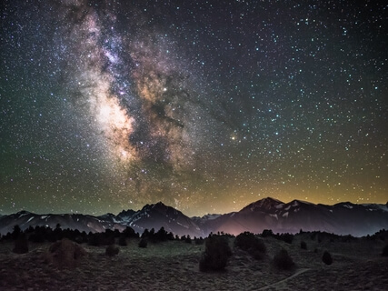 There are a few cabins and homes that glow yellow from outdoor lights and fireplaces inside that you may see through windows,