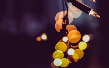 You discover a table covered in holiday lights.