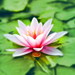 Each letter the petal of a multicolored lotus flower.