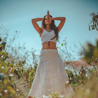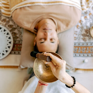 So just taking your three middle fingers and bring them up to your third eye.
