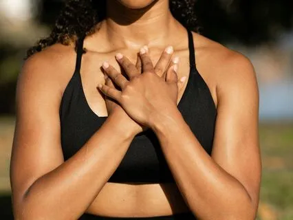Lege nun sanft deine Hände auf deinen Brustkorb,