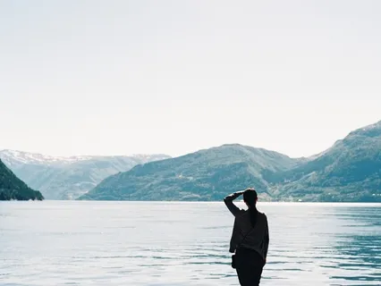 Sentada a la orilla de un lago,