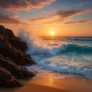Beach Crashing Waves Rocks