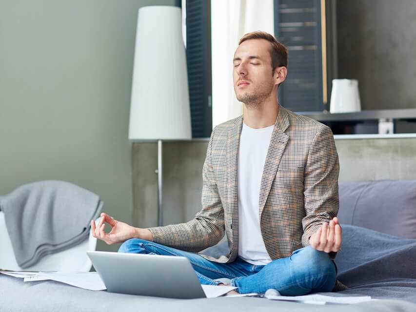 Leg je handen op je knieën en sluit maar even je ogen.