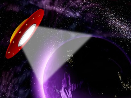 So your guide takes your spaceship up even higher and as he does you notice a massive planet and it's purple.