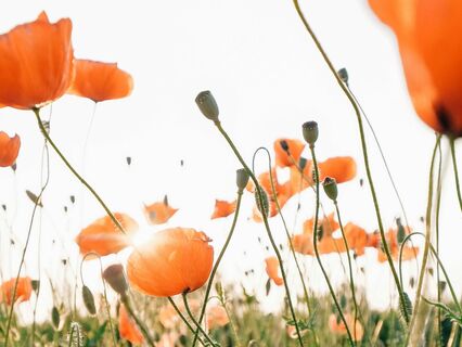 The sky stretches above you in soft shades of blue painted with wisps of white cloud and the sun bathes everything in a glowing light and there's a soft breeze brushing against your skin just enough to make the leaves in the trees gently rustle.