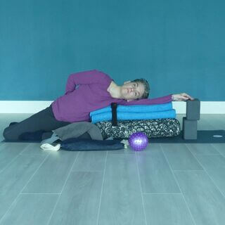 Place a blanket under your head and lie with either your legs supported over a bolster or your legs supported on a chair.