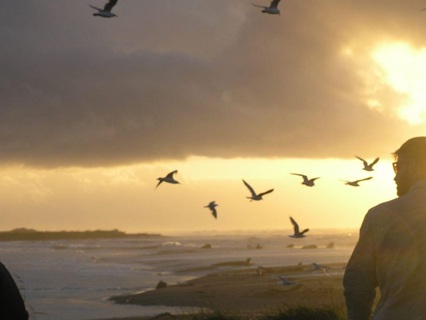 Every sound is fed away by the wind blowing and by the pleasant crashing of the waves onto the beach at shoreline.