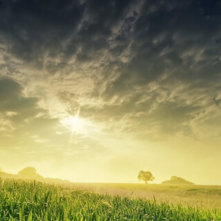 In the middle of this field is a large oak tree.