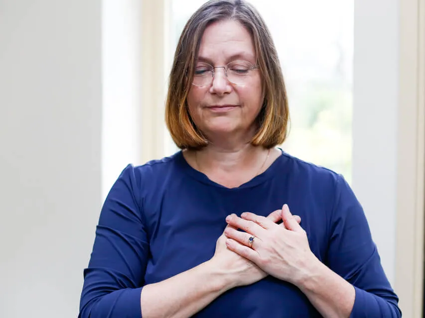 Eventueel een paar keer bewuster ademhalen en een zin formuleren zoals bijvoorbeeld Mogen ik leren goed te zijn voor mezelf?