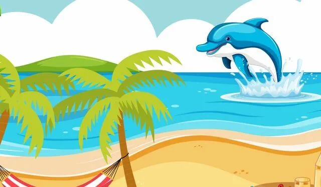 Je bent op een speciaal strand waar vaak groepen dolfijnen komen,