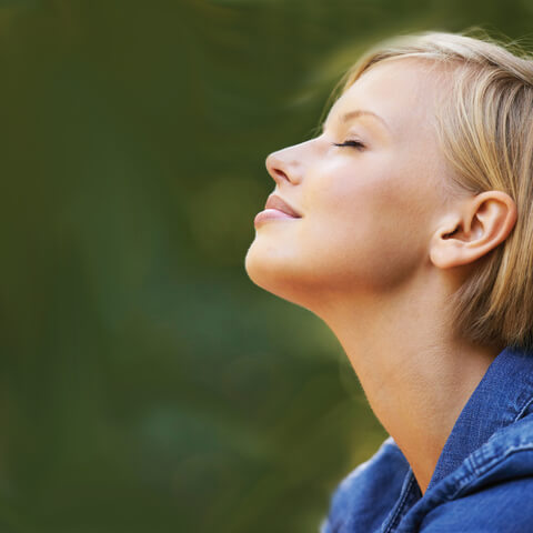 Breathe out any tension and tiredness from your eyes.