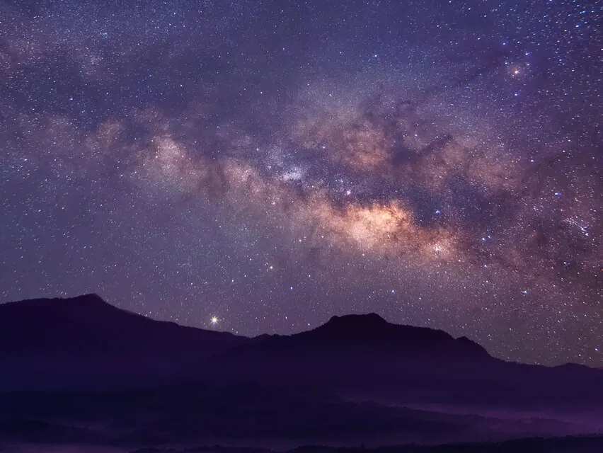 Je blijft een moment staan om de energie van het landschap in je op te nemen.