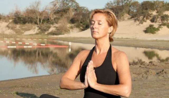 En je kunt hem ook zittend doen op een kussentje of op een stoel.