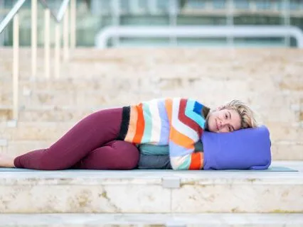 Laat je jezelf helemaal zakken in de houding en hou jezelf voor de gehele duur van de yoga nidra practice voor om stil te liggen.