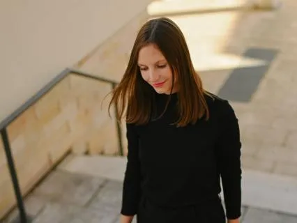 Schließ gerne deine Augen oder lass sie nach unten auf irgendeinen Punkt wandern,