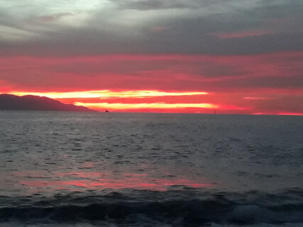The colors and the light play on the moving ocean is absolutely stunning and you make yourself comfortable on the beach with your toes just touching the water.