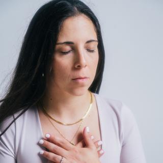 Breathing in and slowly releasing.