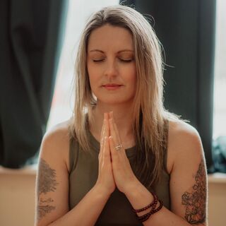Exhaling and releasing.