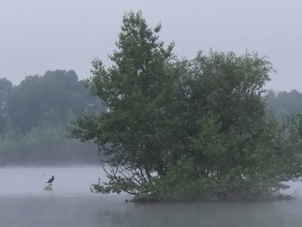 Heute Morgen ist der Himmel bedeckt und über dem See,