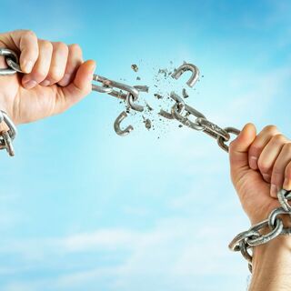 Visualize these dark clouds or heavy chains dissolving and fading away.