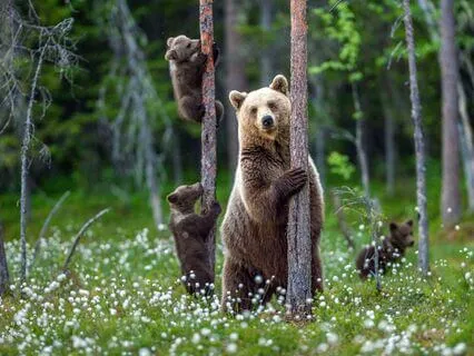 De moederbeer begreep hun zorgen en nam hen mee op een avontuurlijke reis door het adembenemende landschap.