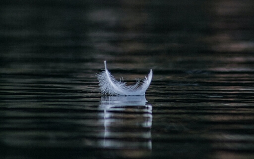 As a feather rests on water's meniscus,